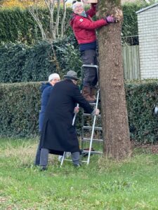 De buurttuin heeft de 10 nestkastjes die vorig jaar zijn opgehangen geïnspecteerd en daar waar nodig schoongemaakt.